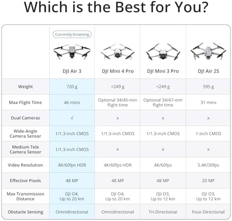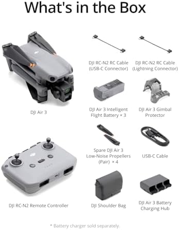 -DJI Air 3 (DJI RC-N2) is the usual choice and contains the drone, DJI RC-N2 distant controller, and different objects for new customers to get began shortly.