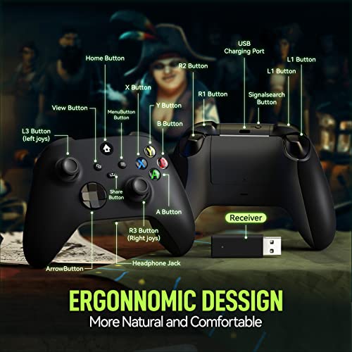 JORREP Wireless Controller for PC, Remote Controller with 2.4GHz Adapter, 3.5mm Headphone and Share Button